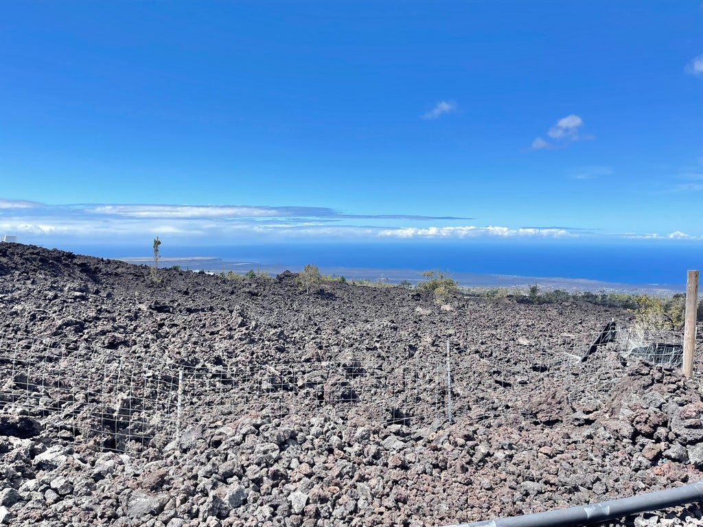 92-8437 Plumeria Lane is 122'x356', graded and fenced; upper area has spectacular South Point, coastline, ocean horizon view! There's two 8'x10' storage containers, an 8'x12' studio, 8x20 shed, 3'x3' shower, 10K gallon catchment tank, 20'x70' chained link kennel area.