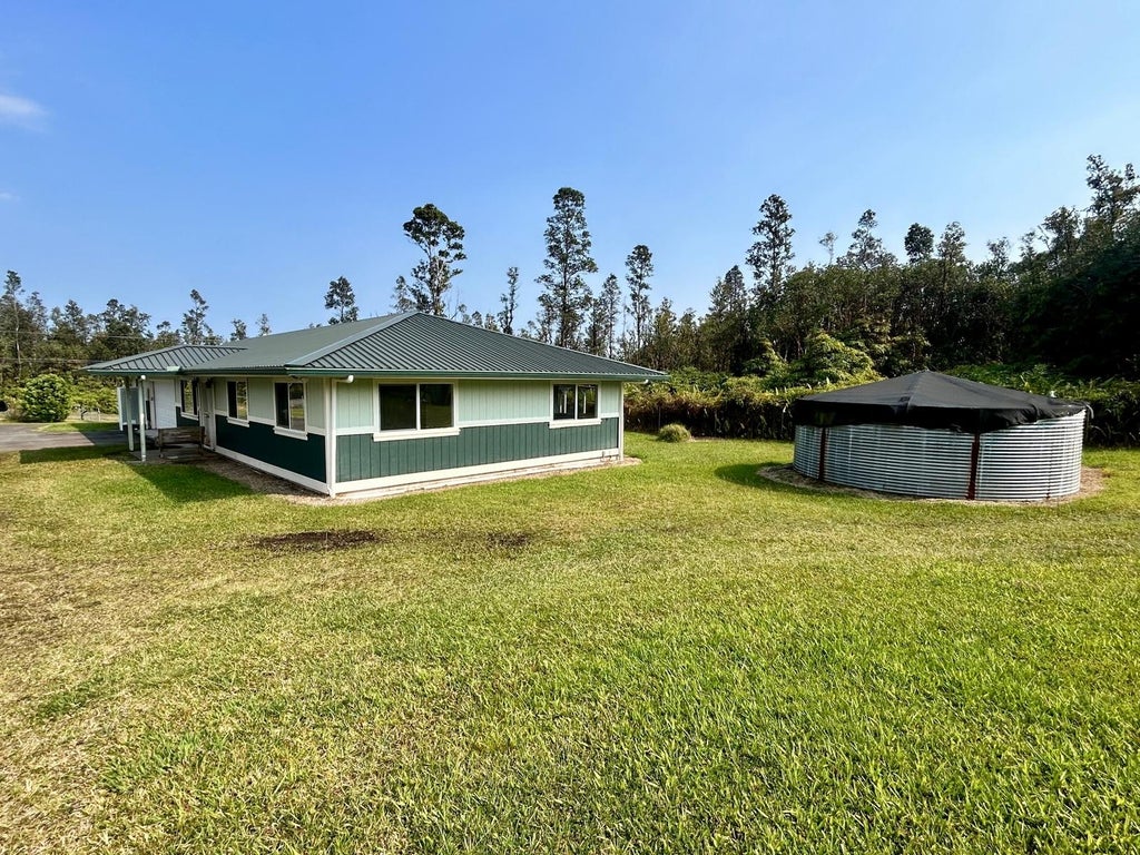 Well maintained 4 bedroom home with a separate storage/ garage building 24'x40' that includes 8'x10' room/office. Approx. 1 acre is lawn. Partially fenced, in the front, left side, ,right side and across the middle. Living room flooring is wood and tile. Custom wood ceiling in living room. Kitchen island with Mango wood top and cabinets below. Large kitchen pantry. The bathrooms have Granite counter tops and tile floors. Bedroom closets have mirrored sliding doors. All bedrooms have ceiling fans, and built in closet shelves. Roomy garage with a toilet and shower. Large electric doors on garage. Your laundry is inside and is fitted for stacked appliances.Front gate. 4 stall dog kennel on slab off of left side of ouse.