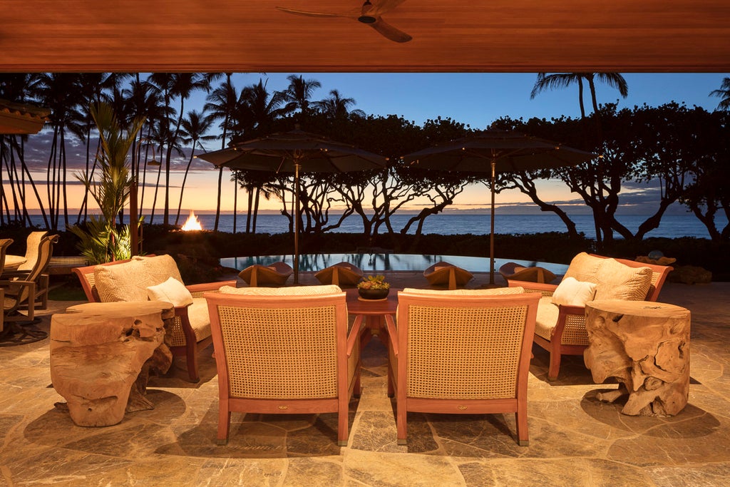 This expansive 7,000 square foot residence on over 1.29 landscaped acres. Featuring five luxurious bedroom suites with ensuite bathrooms and outdoor showers, it can comfortably accommodate 10 guests. Designed by renowned architect Lucky Bennett, the home seamlessly integrates indoor and outdoor living with expansive living quarters designed to offer your guests the utmost privacy. Unwind by the curved infinity pool and spa, surrounded by the gentle sounds of waterfalls and koi ponds. Host movie nights in the twelve-seat home theater or step into your private office to take care of business. Honu Pani offers the ultimate in privacy and relaxation, all while capturing spectacular sunsets and ocean breezes.