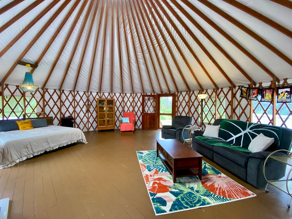 "Aloha e komo mai!" Come discover your own secluded haven in Hawaiian Acres, where "aloha" meets adventure. Arriving at the gated entrance of this property feels like an unexpected surprise and reward for the adventure that the drive to get there may have been. The flower-lined 300-foot long driveway of this gorgeous hidden retreat leads you to a charming 30-foot yurt that invites you inside to dream of all of its possibilities. Equipped with abundant windows, a toilet, two entrances, and French doors that lead to a large deck, this insulated yurt has been lovingly maintained. It was built on a sturdy foundation and had an additional high wind reinforcement package added to ensure its longevity.