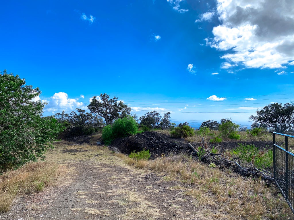 Just an hour and twenty minute drive into Kailua-Kona. In Ocean View town, you will find hardware store, gas stations, L and L Hawaii BBQ, Coffee shops, grocery stores, auto-parts store and much more. There is even a private rubbish service if you so desire. Lava Zone 2. Elevation approx 1,900.