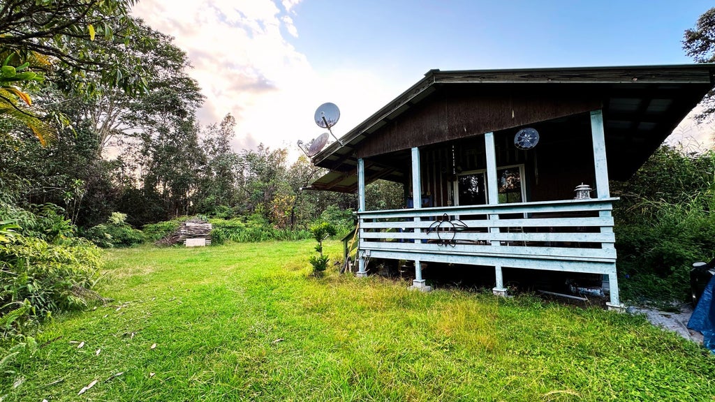 Enjoy the island breeze from your lanai. The main studio space features a kitchen sink and a framed bathroom area, with prior plumbing and electrical for your finishing touches. Catchment system requires maintenance.