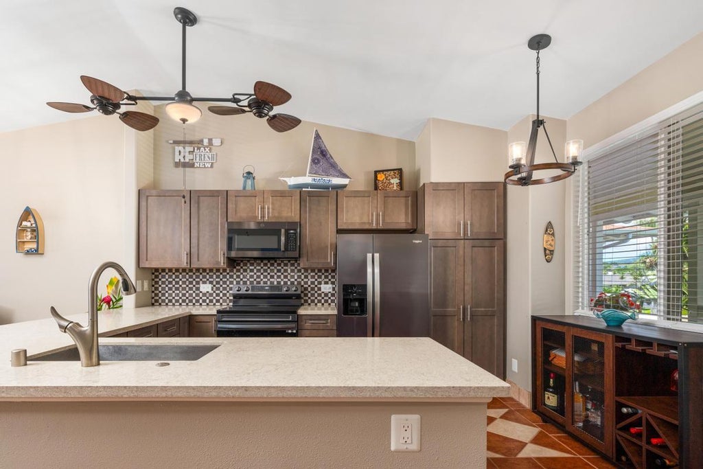 Step inside to find an airy, light-filled interior with vaulted ceilings, island-inspired artwork, and tasteful furnishings—including a King Sleep Number bed in the spacious primary suite. Wake up to gentle island breezes and peek-a-boo ocean views from both the living room and your private bedroom, or enjoy stunning vistas of majestic Hualālai from the kitchen and guest room.