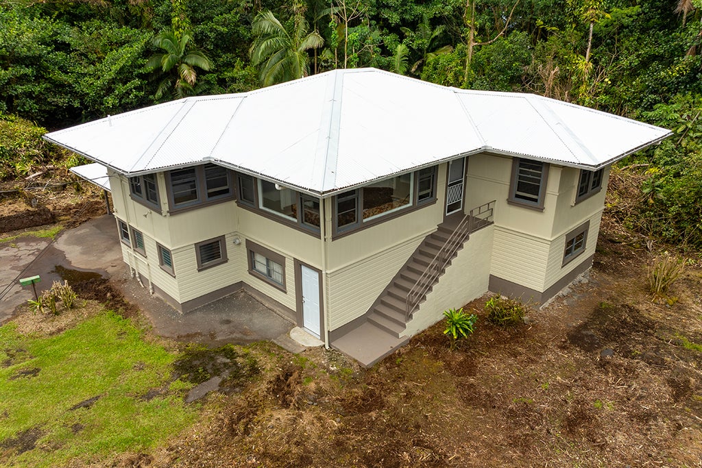 Located just down the road from the Puna Kai shopping center and the heart of Pahoa town, this well-maintained home has been cherished by its original owner. Offering a comfortable living space of approximately 2,484 sq ft, this home features three bedrooms upstairs and one downstairs, providing ample room for your family. Situated on a generous 3.76-acre lot, the property is zoned A-1 acre, with potential to build two additional homes (please verify with the planning and water departments).
