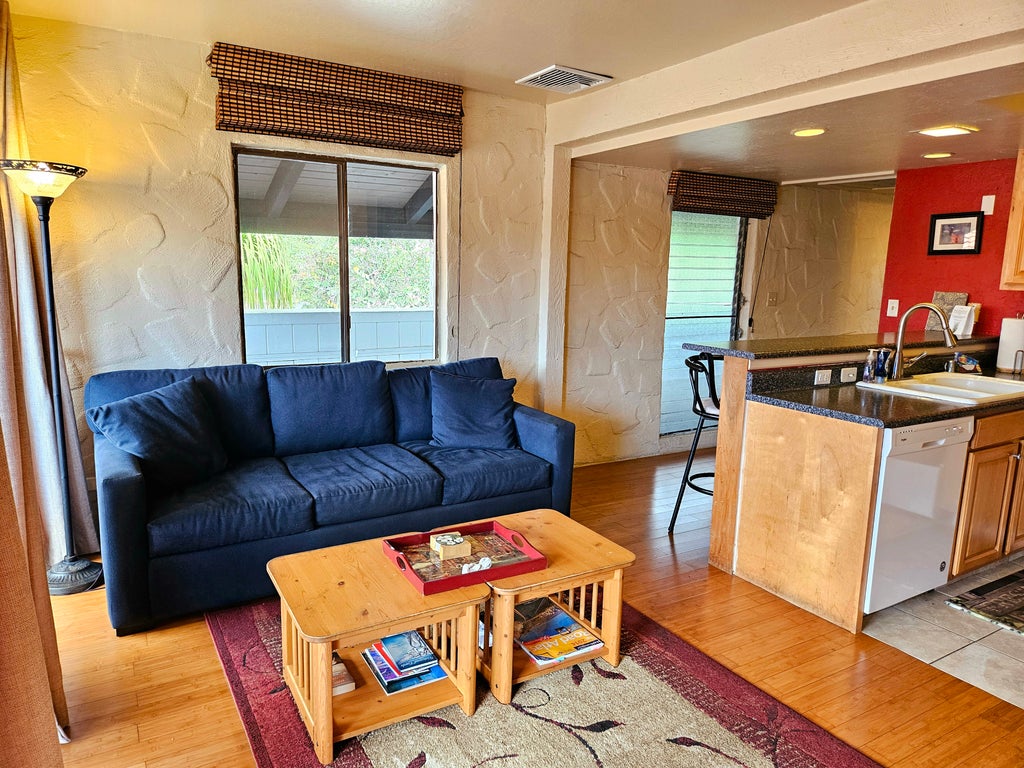 Unit 301 comes fully furnished with central AC for year-round comfort, a renovated open-concept bathroom with an updated vanity, and updated kitchen counters and cabinetry. Relax on the patio or take a brief stroll to the shoreline and take in breathtaking views of the horizon or sky illuminated by Kona’s famous sunsets. The patio features extra storage space. The bedroom window offers mountain views. Located next to the lobby, 301 provides quick access from the parking lot.