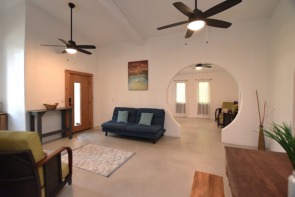 As you enter the main living area you are greeted by the high ceilings, arched doorways, and custom finishes that give this property a modern yet rustic charm. The finished concrete floors are practical, adding to the low-maintenance, open feel. The massive warehouse is nicely integrated into the daily life of the property, especially with direct access from the laundry room and main living area. Plus, there's a huge covered, garage/carport!