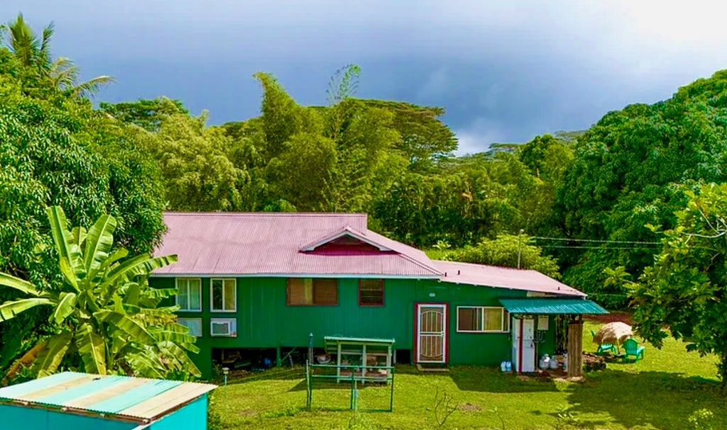 The home has green house, banana plantation 150+ trees ,5 types of bamboo including edible, pineapple patch 100+ plants, 2 avocado trees, 2 soursop, 3 rolinia, 4 mango trees heavy producers, abiu, star fruit, star apple, 2 breadfruit trees, 6 jackfruit trees, 3 lemon , 3 oranges , 3 limes , tangerine , vanilla bean , mountain apple, 30+ papaya trees , cinnamon tree, cacao tree, purple sweet potato patch , sugar cane , taro patch, ginger, agave, aloe vera patch , may decorative plants , bat flowers , birds of paradise foxtail palms , traveler palm, and much more. Property available with livestock (chickens , quails , peacocks). At night the home is beautifully lit up with outdoor LED lights.