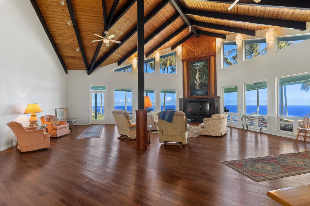 This beautiful oceanfront home in O’okala on the Hamakua Coast, has just under 4,000 sqft of living area, with approx. 700sqft of ocean view lanais. Though updating could be done, this home is move in ready. With vaulted ceilings and an open concept living area, ocean views abound. The property gives you a sense of old Hawaii, looking out over the Pacific Ocean. Set far from the highway and without road noise, it is well buffered to allow you to enjoy the best of life in Hawaii.