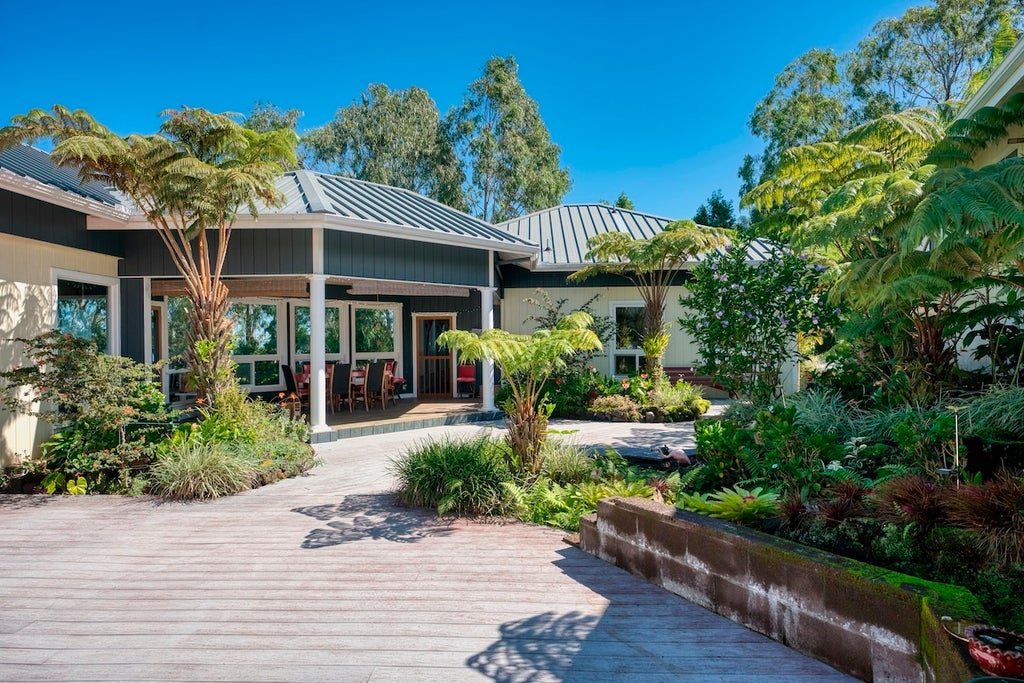 Located at an ideal elevation of 900 feet, just 30 minutes from Hilo, this sunbelt oasis combines warm, sunny days with cool, refreshing nights. The estate is thoughtfully designed to embrace indoor-outdoor living at its best.