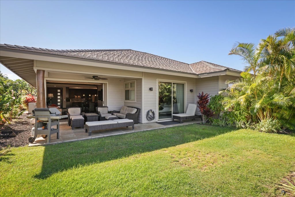 Experience island living in this stunning 3 bedroom single-level condo located in the heart of Ka Milo at Mauna Lani Resort. Owned solar panels provide significant long-term savings. Open-concept living spaces with seamless indoor-outdoor flow, offering comfort at every turn. Featuring 1,653 sq ft of interior space, a gourmet kitchen with high-end appliances, and 15' pocket doors leading to a private lanai with golf course views.
