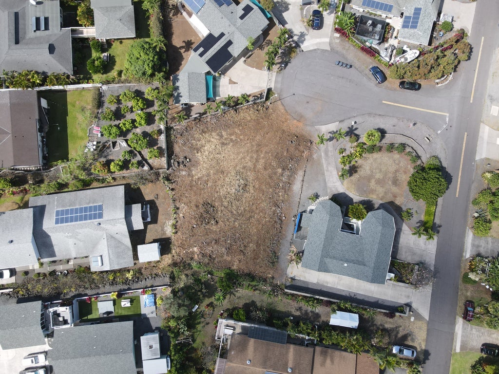 Enjoy ocean and sunset views from this peaceful lot in the lower Kona Palisades neighborhood. Recently cleared and staked, the 11,531 sq. ft. lot provides the perfect opportunity to build the home of your dreams. The property is located on a quiet cul de sac, but provides quick access to multiple highways and the Kona Airport.