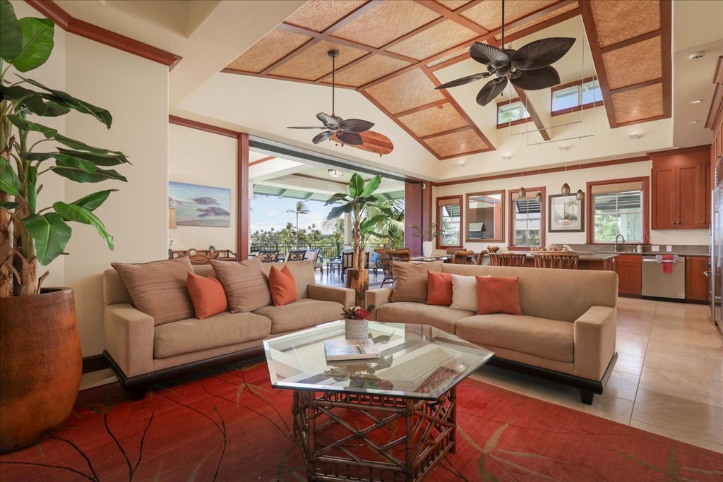 Experience the pinnacle of luxury resort living at Kolea, nestled within the highly sought-after Waikoloa Beach Resort.This exceptional penthouse villa offers a seamless blend of sophistication and tranquility, with 3 ensuite bedrooms and a sprawling 2147 square feet of interior living space.