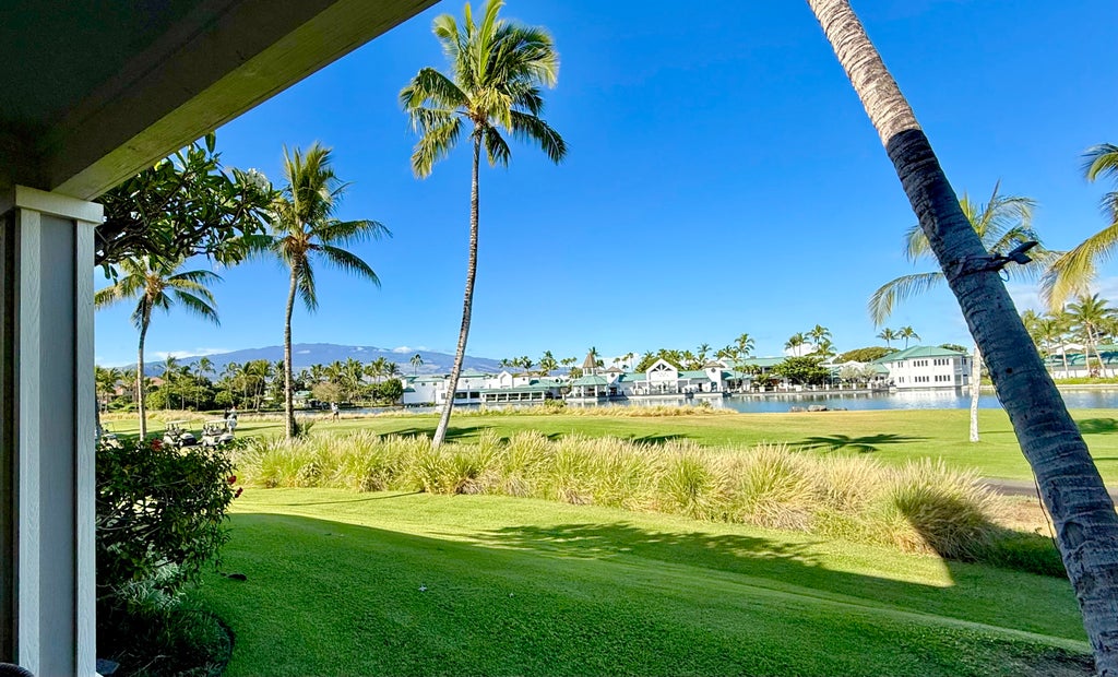 Very spacious 3-bedroom, 3-bathroom condo in the beautiful Waikoloa Fairway Villas complex with an incredible water view. Come on in and take a look at this lovely Waikoloa Fairway Villas Gem! This bright and airy 3-bedroom, 3-bathroom, 2-level condo has beautiful fairway, water and Hualalai Mountain views. Step inside to discover soaring high ceilings enhancing the open and airy ambiance. The large, modern kitchen features granite counters, stainless steel appliances, a convenient bar counter for casual seating, and a separate dining area for more formal dining. Very well maintained and kept comfortable year-round with central air conditioning, this unit offers the perfect blend of a private retreat that is conveniently located. You're just moments from world-class dining, diverse shops, championship golf, and beautiful beaches. Plus, enjoy fantastic amenities including a shared pool, athletic center, and BBQ area. This unit comes with one garage (with garage door with remote control & keypad) and one deeded parking space. Move in or use it for a vacation rental.