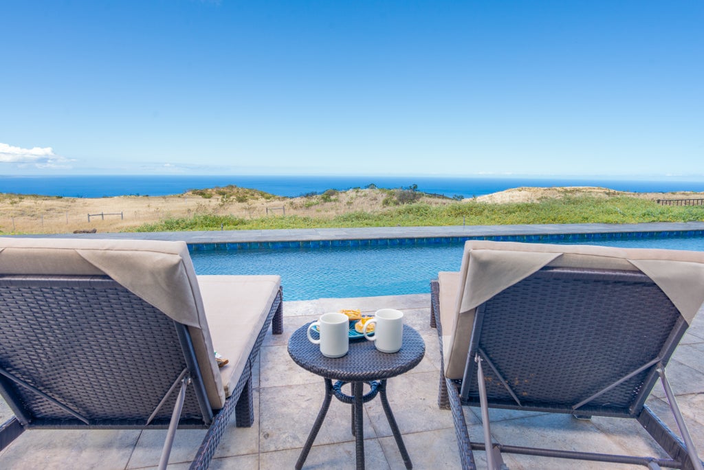 This single-level 3 bedroom, 2-1/2 bath Kohala Ranch home sits sits on a 3 acre flag lot at the end of a cul-de-sac in the middle "Meadows" of Kohala Ranch. This location offers privacy and uninterrupted ocean views and is at a comfortable elevation of approximately 1600 feet above sea level.