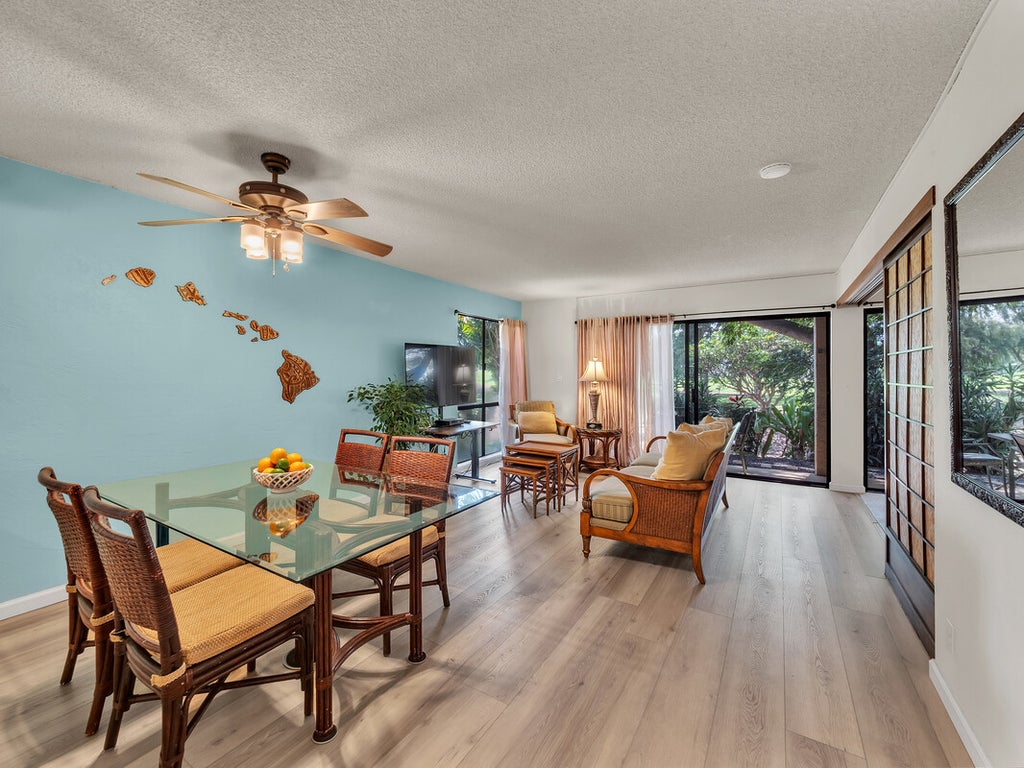 Welcome to Paniolo Club #128, a rarely available ground-floor unit tucked into the heart of Waikoloa Village. This comfortable and well-maintained 2-bedroom, 2-bath condo offers peaceful golf course views from a private lanai, perfect for quiet mornings or casual gatherings.