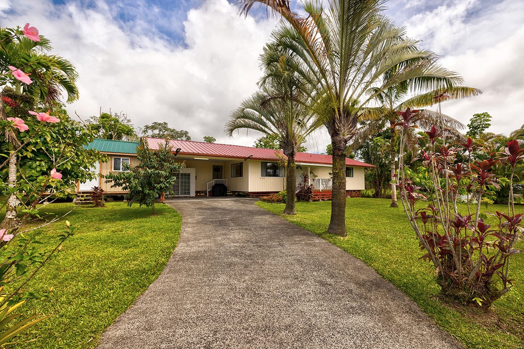 Outside, the fully fenced and landscaped yard is a tropical oasis, adorned with colorful flowers and swaying palms and a wide assortment of fruit trees—perfect for enjoying Hawaiʻi’s beautiful climate.