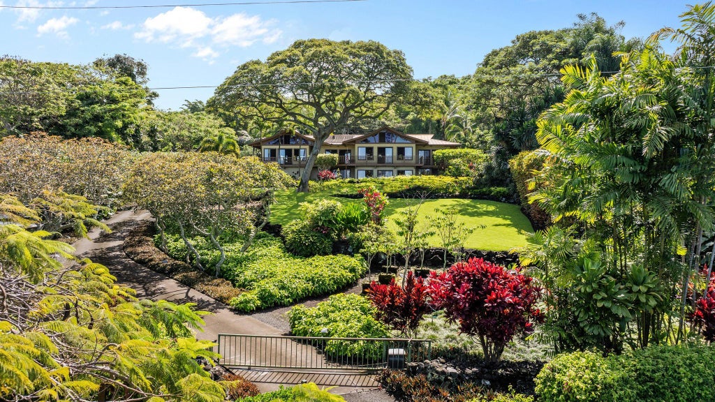 A must-see, one-of-a-kind estate just minutes from Kona town, offered for the first time in nearly 25 years. Situated on 1.2 acres of fully landscaped grounds, this property is a plant lover’s paradise, featuring 16 mature fruit trees—including avocado and mango—lush tropical landscaping, and automatic landscape lighting.