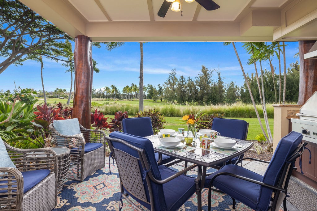 Lanai with built-in Viking BBQ and wet bar – perfect for sunset dinners overlooking the golf course.