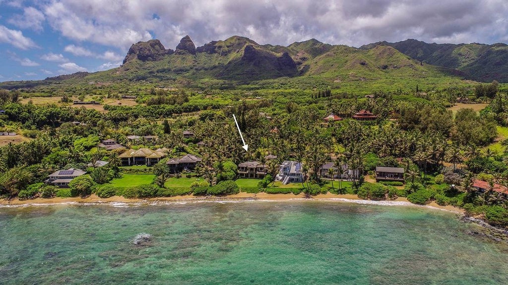 Hale Aliomanu is a private oceanfront estate located on Aliomanu Bay on the Northeast side of Kauai. As you drive in the gate, you enter your own personal retreat of swaying palm trees, the soothing sound of the ocean, lush tropical landscaping and the tranquility of Aliomanu. Enjoy unobstructed ocean views from most all of the rooms. Watch the sun come up from the comfort of your bed or stargaze from your lanai. Walk out your front door and stroll across the lush lawn to one of the most private and year round swimmer-friendly beaches on the island.