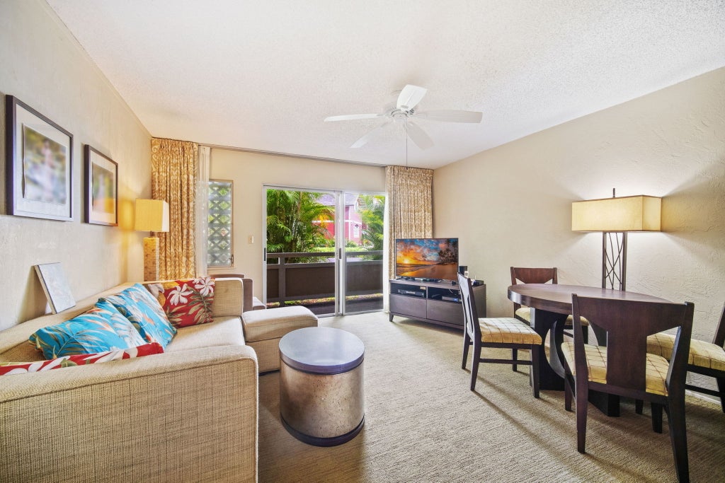 This one-bedroom vacation rental opportunity, located on the ground floor of the building, boasts easy access to the pool, grounds, beach, and nearby shops. Its central location on Kauai makes it a favorite among guests, offering seamless travel to both the north and south of the island.