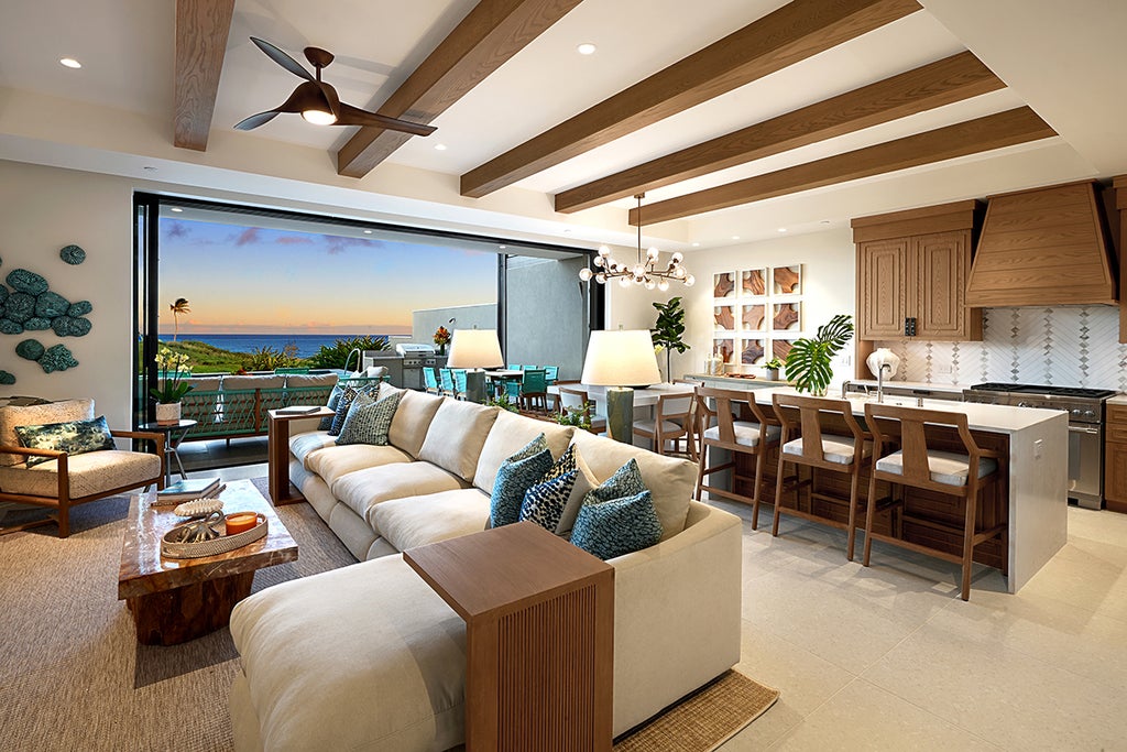 This is a unique opportunity to own a rare oceanfront gem in a beautiful new resort community on the Garden Isle. From Laola Nani 2006, you will love your view of the shimmering azure waters of the Running Waters Bay and the Ninini Lighthouse. Here, relaxation is waiting to welcome you home. The 2-story, 4 bed/4.5 bath townhome is nestled along the prized oceanfront hole #15 of the Hokuala Ocean Course. Residence 2006 is the last end-location in Phase 2. The villa features tropical contemporary design with custom wood cabinetry, natural stone countertops and Terrazzo tile flooring. The spacious outdoor lanai offers seamless quintessential indoor/outdoor Hawaiian living with a private pool and built in BBQ. The kitchen is a chef's dream with Thermador Pro Grand Series appliances, wine/beverage cooler, custom mosaic tile backsplash and quartz countertops. The northern end location provides privacy and a spacious lanai and fenced in lawn plus a fabulous outdoor shower in the lower Master en-suite bath.