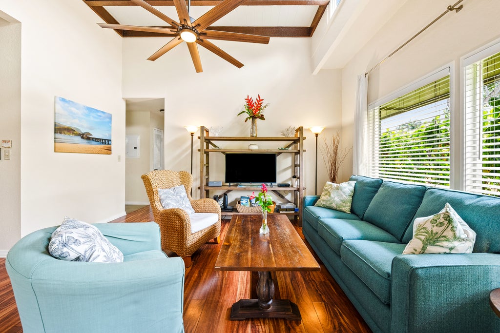Ideally located in the center of the complex, close to amenities. Take a dip in the pool after a day in the sun. Delight in fresh flowers from Puamana’s private cutting garden. Stroll across to the golf course, the perfect place to catch the sunset! Puamana is also located near restaurants & bars, shopping, secluded beaches, the Makai Golf Course, and just a short drive to world-renowned Hanalei Bay.