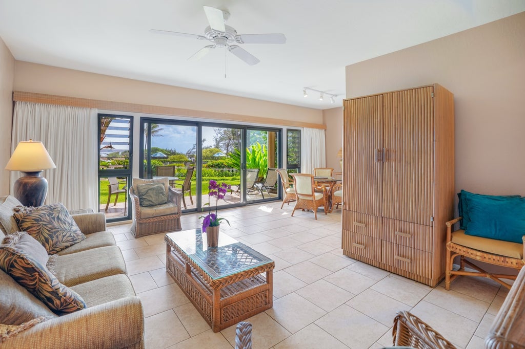 Great Ground floor vacation rental with ocean views of the Pacific Ocean overlooking the tropical gardens, resort's heated pool and bbq area. With the convenience of being centrally located on the island, relax and enjoy the easy lifestyle any day of the year. It can be your first or second home. Or leave it as a vacation rental for any time you want to get away from it all and relax in this "Heavenly Place".