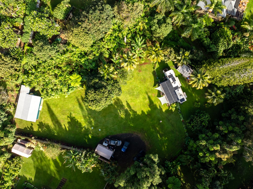 Off-Grid Power System: A SunGoldPower Solar System, comprising 18,000W capacity with 18 high-efficiency 450W solar panels mounted on the lanai roof and a 48V battery bank, provides an impressive renewable energy solution. This setup includes 4 high-quality batteries and is valued at $40,000. Additionally, a backup solar-powered battery system, with 10 panels on a shed roof, supports energy autonomy and sustainability with a 3,000W inverter and 10-battery bank, adding immense value to the property.