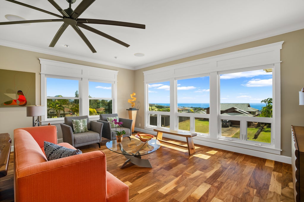 Immaculate, furnished, custom 5-bedroom, 4-bath home is in Kalaheo's Kakela Makai Ocean View Subdivision. This sizeable multi-family home boasts 3,398 sqft of living space and a fully permitted ADU rental unit. The upstairs has three bedrooms and two bathrooms and utilizes 2362 sqft of living area plus a very comfortable 376 sqft lanai. The downstairs ADU offers a spacious 1036 sqft living area with two bedrooms, 1.5 baths, a full kitchen (+ kitchenette), laundry, and a lanai. Utilize the ADU or combine the two for one large family home.