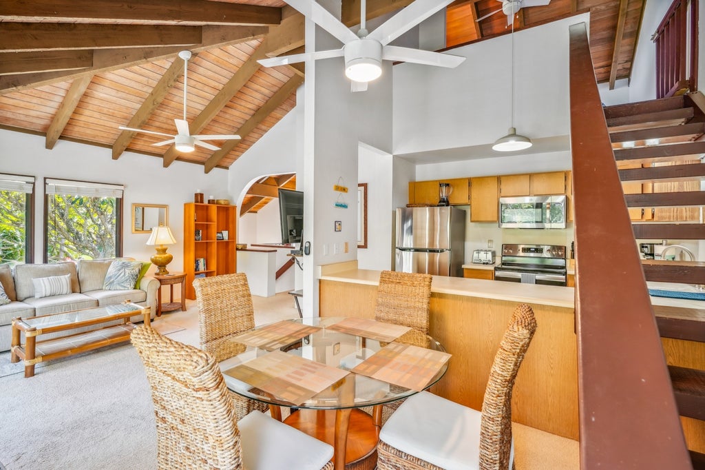 Nestled in the lush surroundings of Poipu Kai, this serene 1-bedroom, 1-bathroom condo with a spacious loft (featuring two additional beds) is the perfect island escape. Tucked away for privacy, this highly desirable vacation rental offers breathtaking tropical garden views and is just steps from Kahala’s private salt water swimming pool.