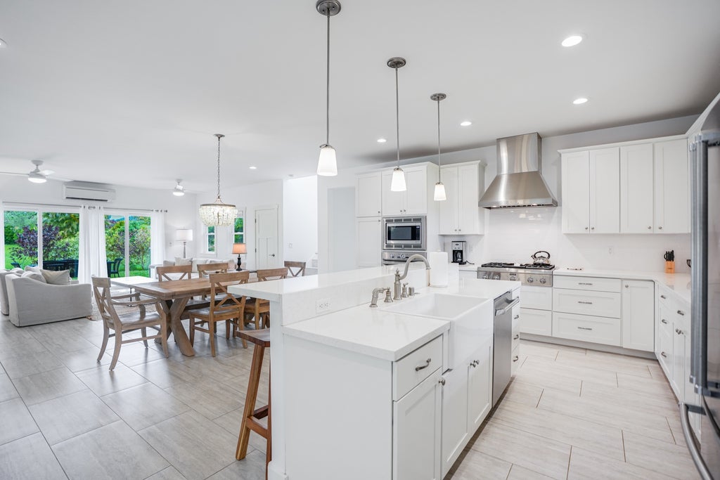 This beautifully remodeled 4-bedroom, 3.5-bath home with a bonus room and two-car garage in Princeville offers refined living and stunning mountain views. The open floor plan features a gourmet kitchen with Thermador appliances, Belmont DeWils cabinetry, and counter-height seating. Oversized windows in the bright living and dining areas invite natural light while framing picturesque views.