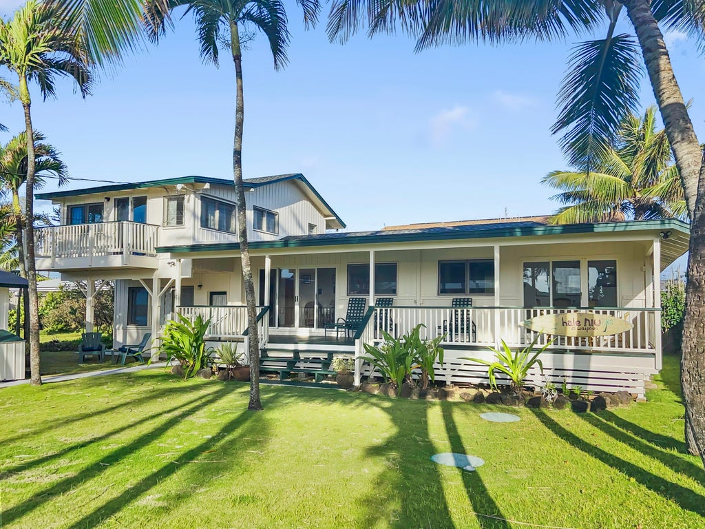 This vacation rental house has the ability to sleep 10 people with 3 full bedrooms 3 full baths and an additional nook with twin beds off the second floor primary suite and a pullout sofa. The main floor living area includes two bedrooms, 2 baths and a large open kitchen/dining area, as well as a sitting area and a full living room. Upstairs you will find the primary suite, a full bath a twin sleeping porch and a lovely lanai for taking in the ocean views. The main front lanai is an expansive and relaxing resting place to enjoy the tropical breezes. Set up a hammock and spend your day perched between the coconut palms that line the yard.