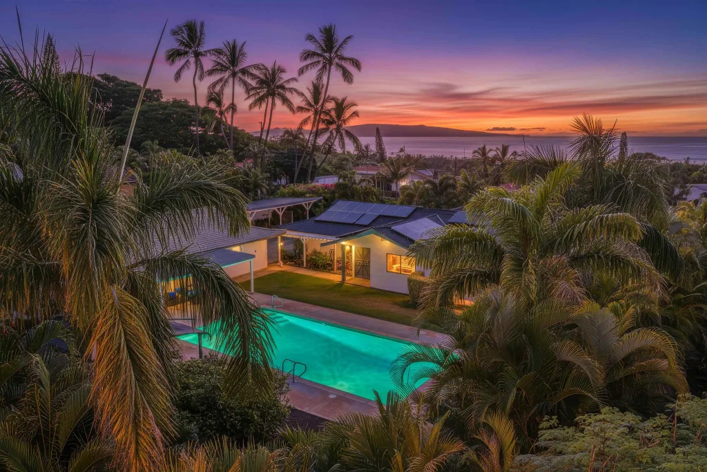 UNIQUE single-level home on well-landscaped, 1/2 acre lot. Expansive front yard with nice ocean and mountain views. Private backyard with large, tiled pool. Well-planned improvements: new rock walls at front and sides, cesspool to septic conversion, upgraded A/C, upgraded electric, 52 solar panels with net metering, new roof and more. Separate 2 car garage with full bath and guest room. Additional parking in 3 stall carport. Make sure and see this home—it is fantastic as is, but if expansion is on your mind, this is an ideal opportunity! Seller is a licensed Realtor in Hawaii.