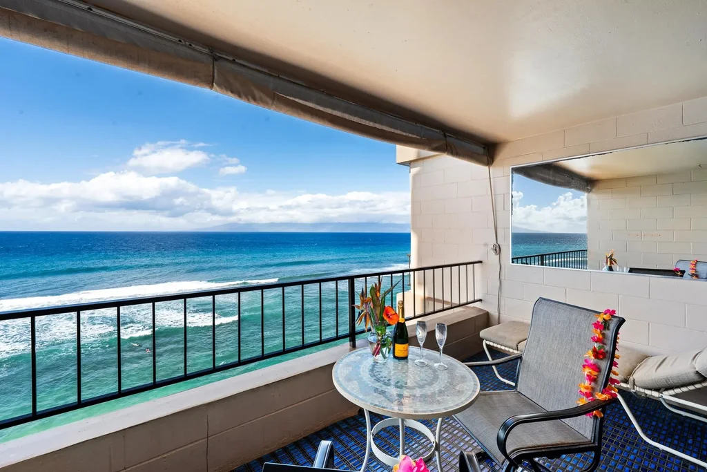 Welcome to Maui Kai Resort #703- a direct beachfront Hotel Zoned Studio vacation rental with unobstructed outer-island, year round sunset, and awesome seasonal whale watching views all perfectly framed by floor to ceiling sliding glass doors. The snorkeling and diving directly fronting the resort is spectacular on the reef below where turtles, fish, eels, and other sea creatures frequent. In the winter months, the surf break directly in front of the resort is a ton of fun! On the mauka side of the 80 unit resort building, lives the community pool, a rec room with fun activities, and a couple of bbq grills. Solar PV panels on the complex roof help to keep the HOA dues in check. Maui Kai is located directly on the golden sand shores of North Kaanapali Beach and is within short walking distance to a variety of local shops and restaurants, food trucks, and some fun night life activities. The property participates in the front desk rental program but can be rented on a nightly basis however a new owner chooses to do so. Please keep in mind that your maintenance fees include water, sewer, electricity, basic cable, and common area maintenance and insurance. Rare income-producing oceanfront opportunity, ideal for investment or personal use. Maui Kai is hotel-zoned for legal short-term vacation rentals and is not within the apartment districts affected by Maui County’s proposed Bill 9 phase-out, offering added confidence and rental flexibility. Live and love your Maui Life today at Maui Kai #703.